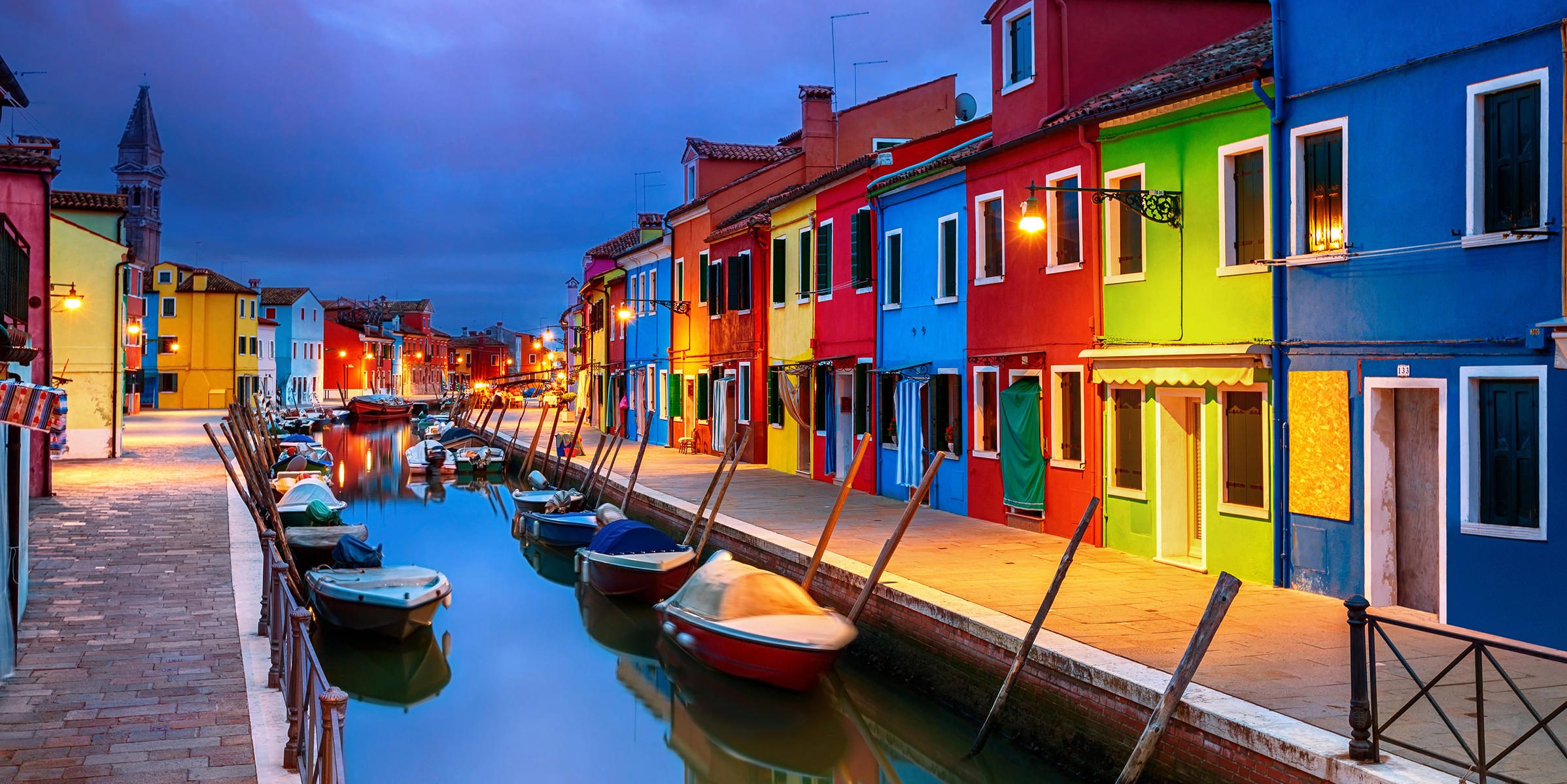 С острова Мурано мы отправимся на остров Бурано, известный своими разноцветными домиками, которые в любую погоду создают невероятно солнечную и радостную атмосферу, пропитывающую весь остров. Очаровательный рыбацкий остров, согласно легенде, приобрел свою радужную окраску благодаря женам рыбаков, которые раскрасили свои дома в разные цвета, чтобы мужья еще находясь вдалеке от острова могли видеть свой дом и стремились побыстрее вернуться к домашнему очагу. Теперь домики Бурано привлекают туристов насладиться невыразимым очарованием улочек, каналов и домов этого удивительного острова.